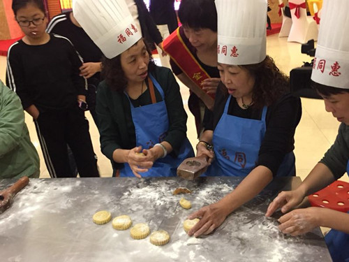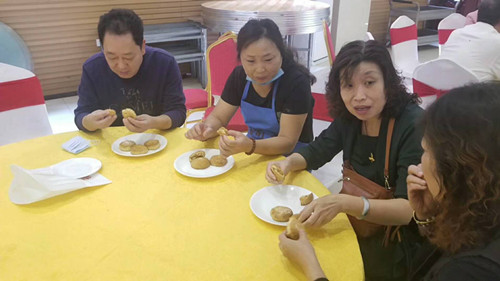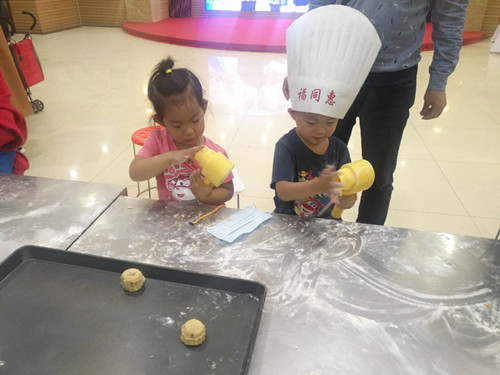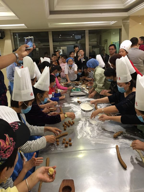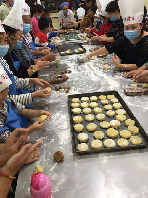 業(yè)主們紛紛加入到制作月餅的隊(duì)伍中