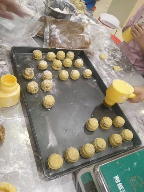 小朋友很認(rèn)真的體驗(yàn)了一把做月餅的樂趣