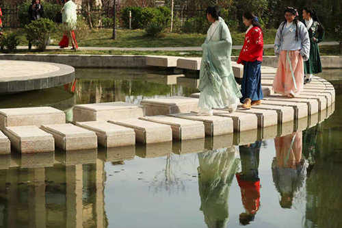 亭臺隨照影,流水漫香痕。
