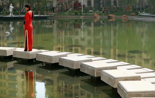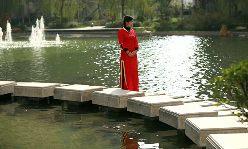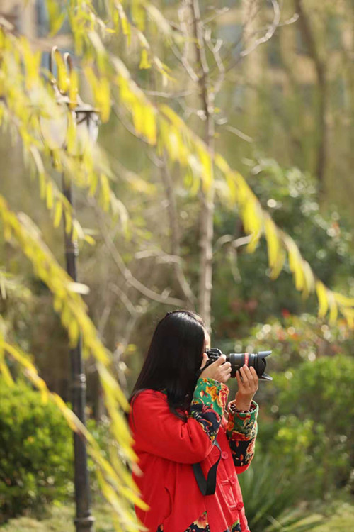 垂柳風揺閑碧水,紅樓綠掩醉亭臺。