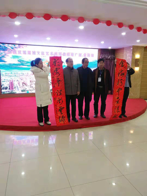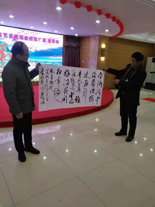 中國書法家協(xié)會會員、山西省運城市楹聯(lián)學會會長楊振生先生揮毫潑墨,寄予金海灣:金海灣中金浪起,彩霞夢里彩云歸。