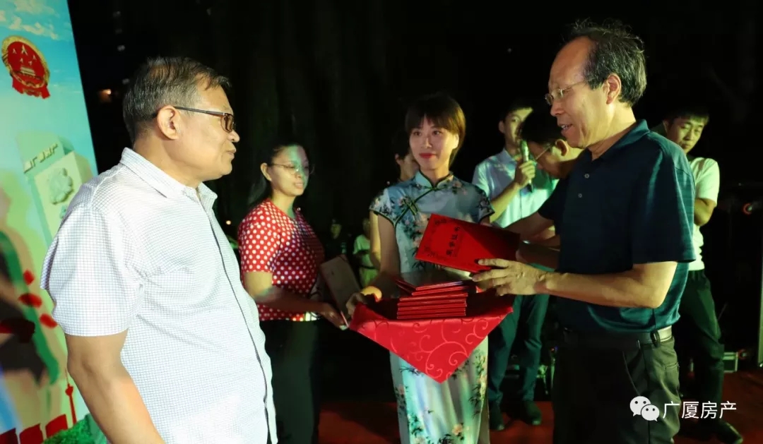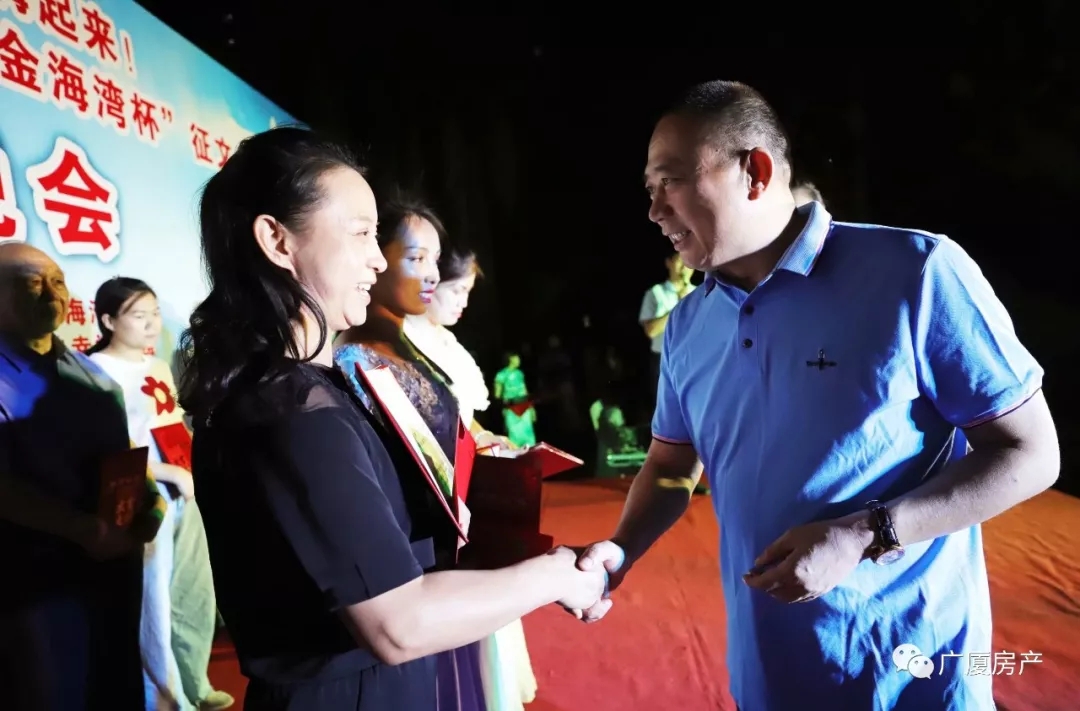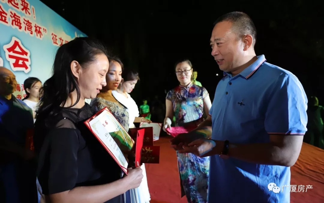 安邑街道黨工委委員、辦事處副主任郭保全先生、廣廈房產公司董事長李建民為獲得特等獎、一等獎、二等獎人員頒獎